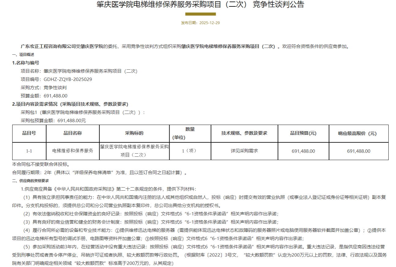 上一条:肇庆医学院电梯维修保养服务采购项目(二次) 结果公告 下一条:肇庆医学院电梯维修保养服务采购项目 废标公告