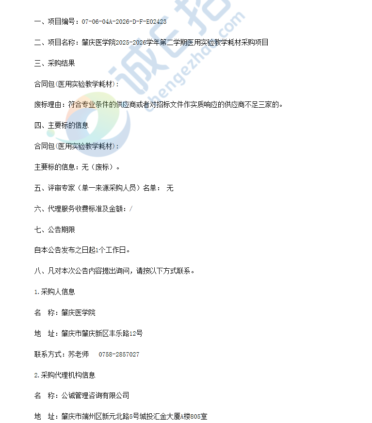 上一条:肇庆医学院2025-2026学年第二学期医用实验教学耗材采购项目(二次)招标公告 下一条:肇庆医学院2025-2026学年第二学期动植物实验教学耗材采购项目(第二次)招标失败公示