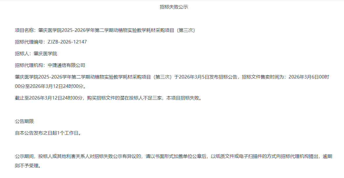 下一条:《肇庆医学院图书馆2026年度电子资源(中国知网)、中国生物医学文献服务系统、新时代高校课程思政数据库系统及移动图书馆续订项目》单一来源公告: