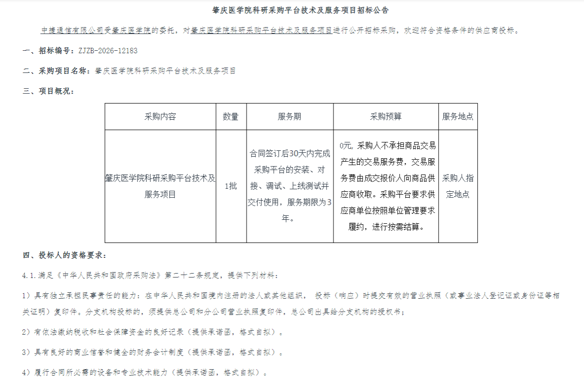 上一条:肇庆医学院2026年信息化设备维护服务磋商公告 下一条:2026年信息化设备及耗材采购项目询价公告