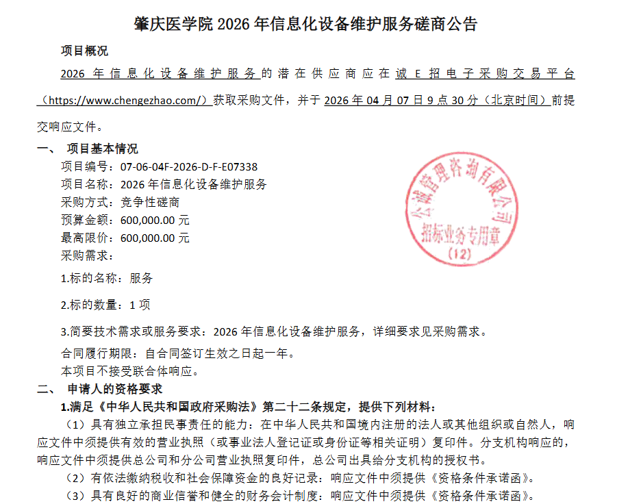 下一条:肇庆医学院科研采购平台技术及服务项目[ZJZB-2026-12183]-招标公告