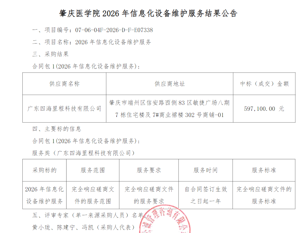 2026年信息化设备维护服务项目结果公告已发布,以下公告链接请查收,中国招标投标公共服务平台:https://ctbpsp.com/#/bulletinDetail?uuid=1ef46b80-81c7-427a-ad3b-98d4d3628c80&inpvalue=%E8%82%87%E5%BA%86%E5%8C%BB%E5%AD%A6%E9%99%A2&dataSource=0&tenderAgency=;